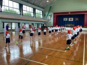 一昨年度から水泳学習参観で披露しているダンススイミング。今年も全校で取り組んでいます。