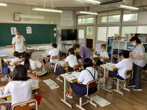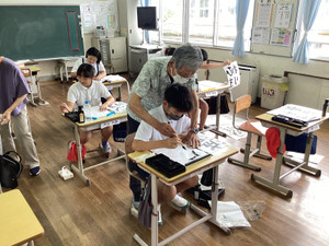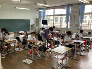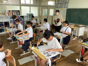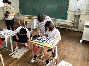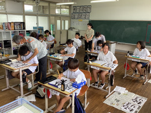 先週に引き続き,今週は5・6年が学校応援団の方々御指導のもと,書道教室を行いました。